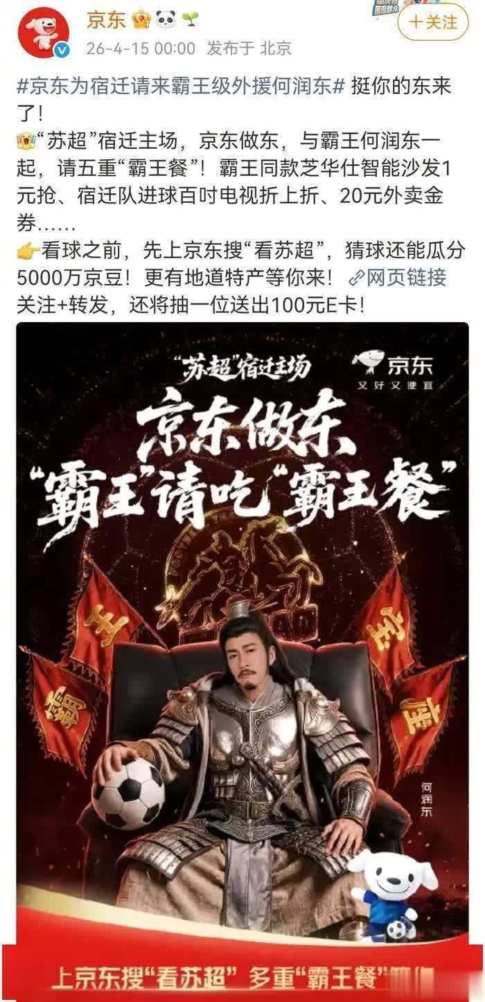 不仅如此,线下联动更是硬核。江苏宿迁作为项羽的故乡,其文旅部门火速向何润东发出邀约。4月18日,他将身着当年《楚汉传奇》的同款霸王战袍,甚至驾着战车,现身宿迁奥体中心为“苏超”联赛助阵。连当年制作甲胄的团队都被紧急找回赶工。可以说,从线上玩梗到线下文旅经济,这波“考古流量”的变现链路被拉到了极致。